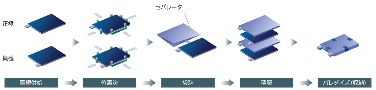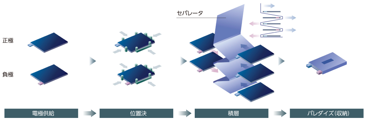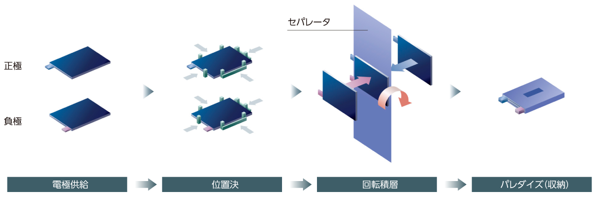 各種電池に適した各種積層方式に対応(葛折、回転、袋詰、枚葉)