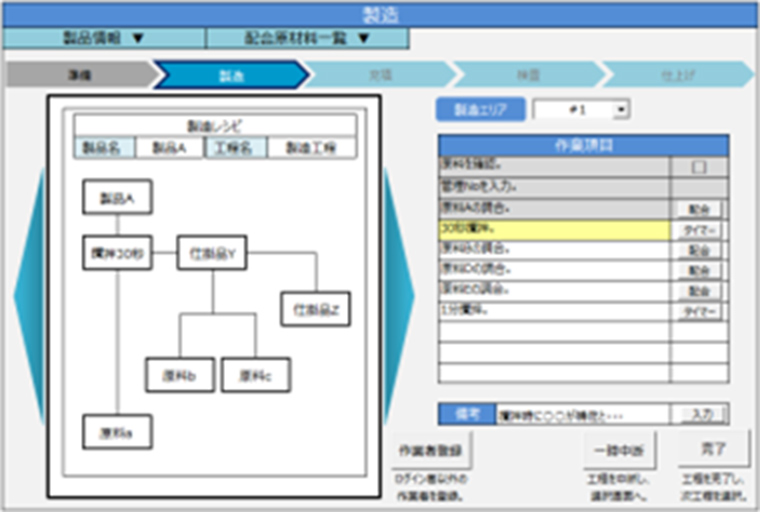 計画に紐付く作業指示書を発行し、作業工程を指示することで、人為的なエラーを削減し、品質を確保します。