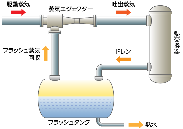 工場排出から発生する低圧フラッシュ蒸気の回収で、エネルギー削減に貢献