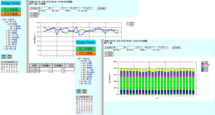 電力、用水、ガス等、設備や工程毎のエネルギー使用量のリアルタイムモニタリングで、エネルギー削減対策に貢献