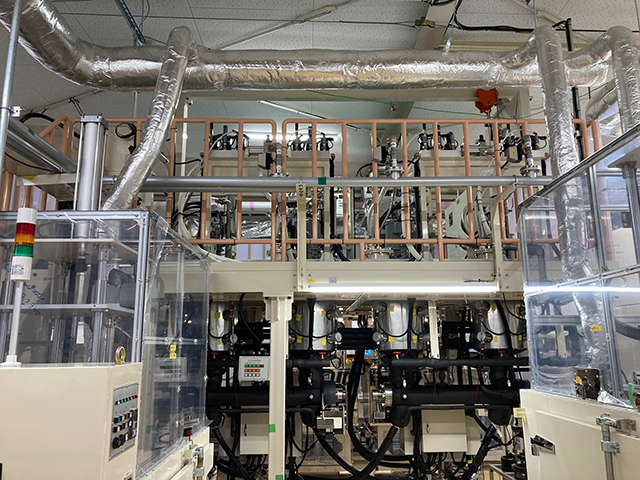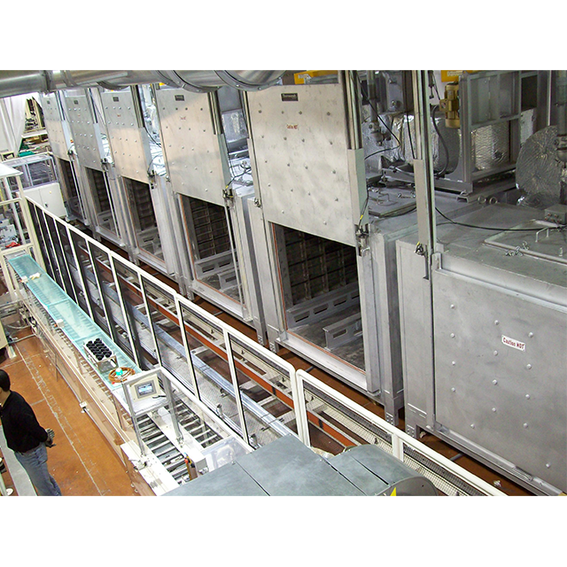 樹脂の浸透性向上のため、樹脂注入前にワークを予熱します。予熱炉内を搬送させながら均一な温度・風量で管理し、ワークの加熱を行います。