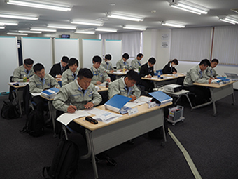 入社式を終えた後、4月3日~8日まで導入教育を実施し、安全とCSRを含む32講座を開講しました。今回は初の取り組みとして研修中盤にボート体験研修を取り入れ、ボート経験者指導のもと、約1時間半、漕艇の練習とレースの体験を行いました。座学で固まった身体を全身運動で動かしつつ、新入社員同士コミュニケーションを取ることができ、充実した研修になりました。